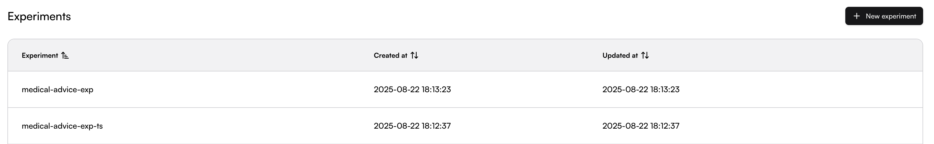 See all experiment run outputs in a comprehensive table view with relevant indicators and detailed reasoning