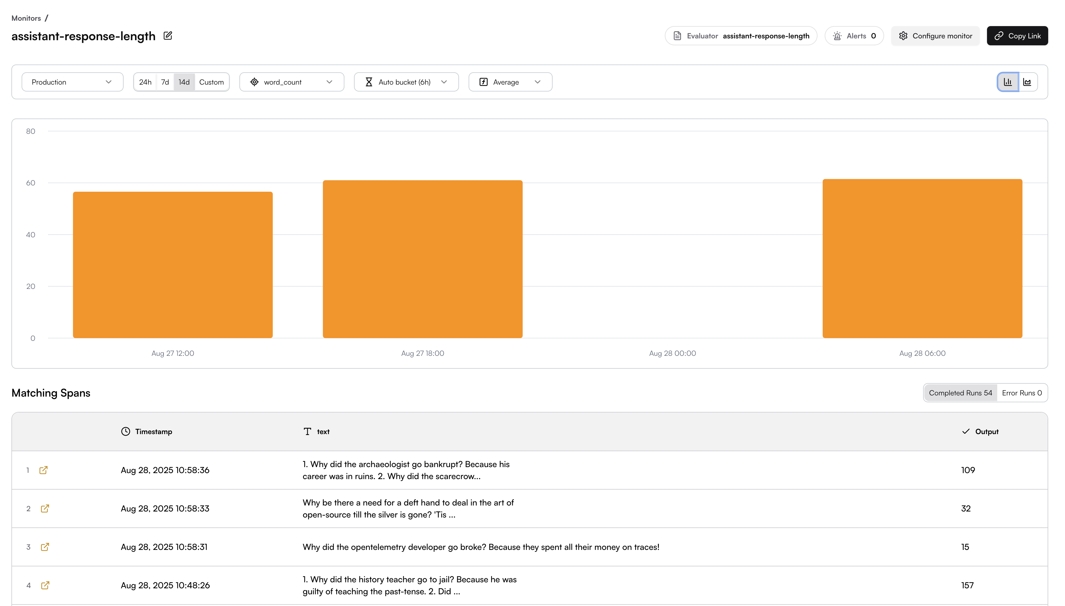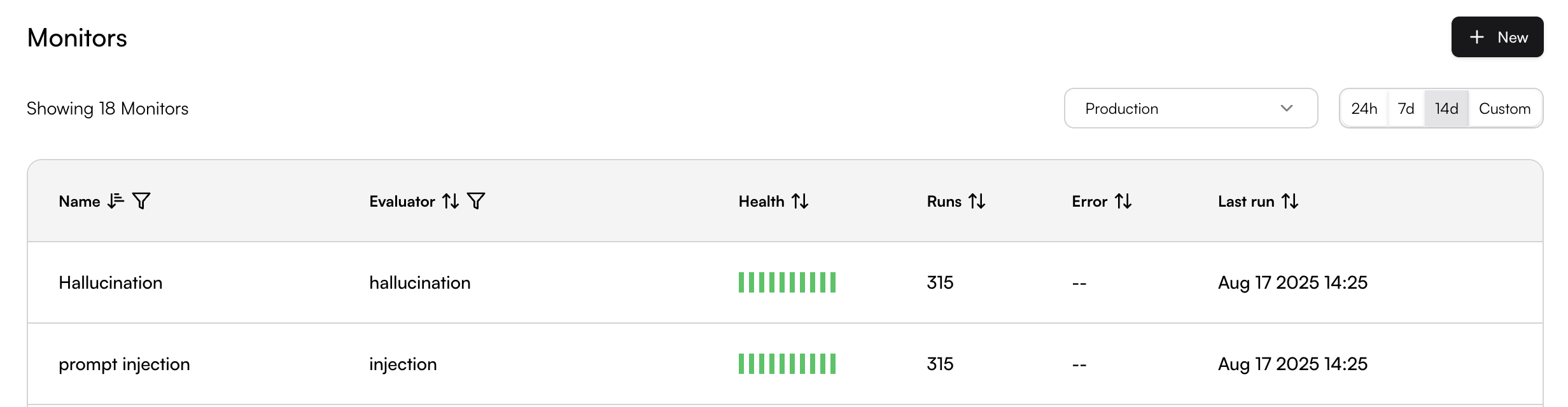 Ready to set up an evaluator for your monitor? Learn more about creating and configuring evaluators in the Evaluators section.